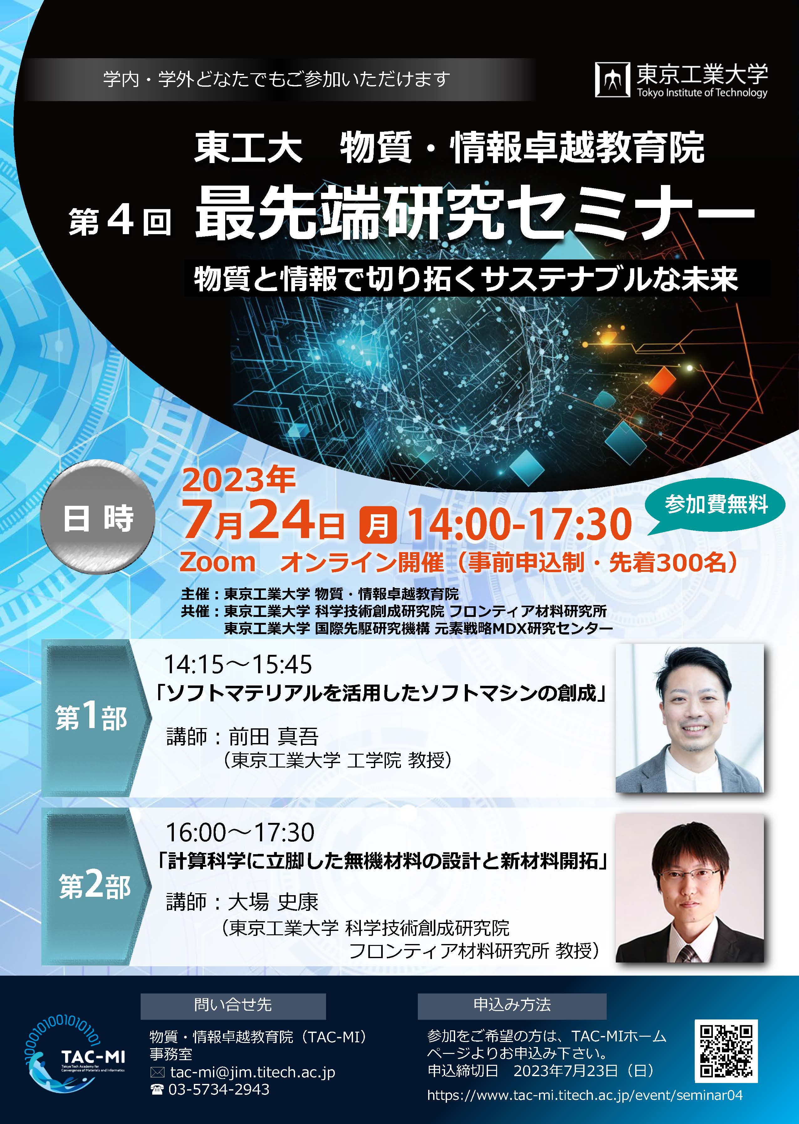 2023.06.27 物質・情報卓越教育院 第4回最先端研究セミナー(2023年7月24日開催)