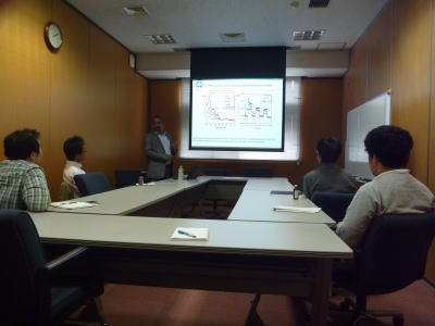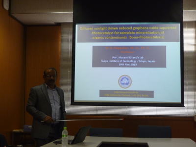 インドのSRM-Research InstituteのNeppolian教授が研究室に来て、光触媒に関する講演をしてくださいました。