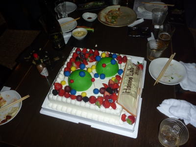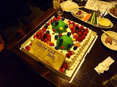 M1の幹事さんの粋な計らいでエレクトライドをかたどったケーキが登場!