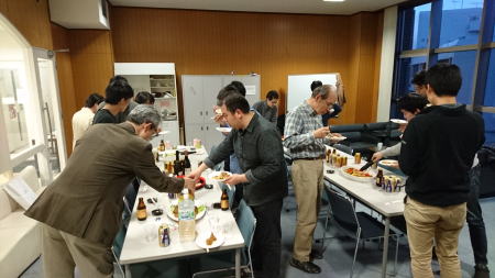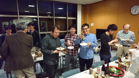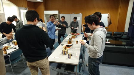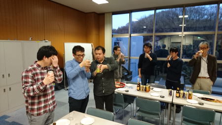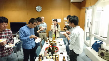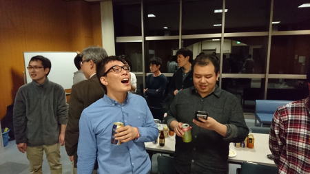 夕方からキャンパス内で飲み会を開きました。今年のM1は二人ともお酒が強いようです。