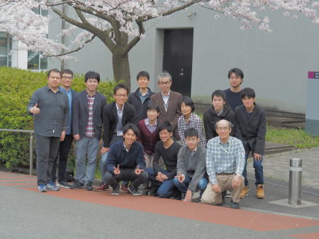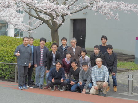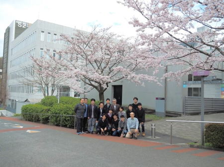 新M1の大屋君と、辛嶋君が研究室に加わりました。元素棟(S8棟)の近くの桜の下で集合写真を撮りました。