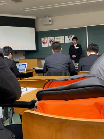 甲南大学でみんなで写真を撮りました。この日はかなり寒かったです。