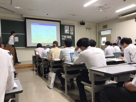 ポスター発表の鯨井君(M1)、竹越君(M1)、河村さん(M2)