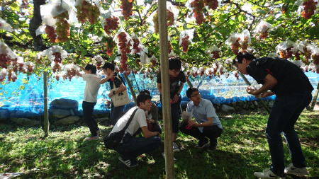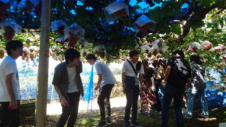 ブドウ狩りで美味しいブドウ(かいじ)を腹一杯食べました。