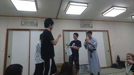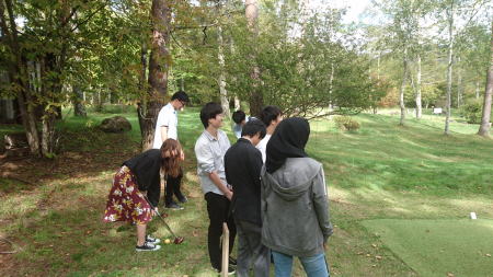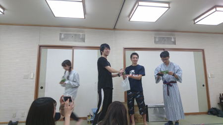 夜は、飲み会とパークゴルフの表彰を行いました。B4阿部君はブービー賞でした。