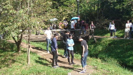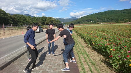 最後は、花の都公園で小学生のように戯れる北野研の学生達。みんな仲がいいですね。