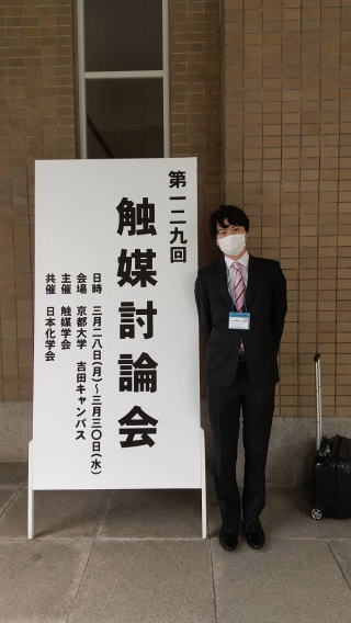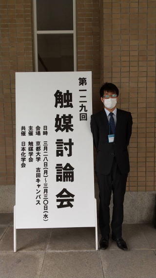 D3の杉山君(左)D2の小笠原君(中央)がそれぞれ触媒討論会B講演での発表を行いました。