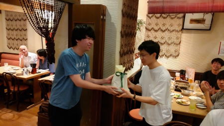 8月8日に前期の打ち上げとM2のLiさんの送別会を行いました。