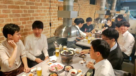 発表後、みんなでジンギスカン食べ放題しながらお疲れ様会をしました。卒業生の小笠原君も参加してくれました!