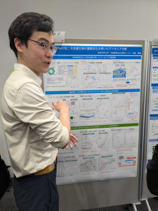 3月18日~19日の期間、大阪大学豊中キャンパスで行われた触媒討論会に参加しました。 M1の古賀さん、三好さん、M2の仁井田君、D1の宮下君、助教の宮崎さんがポスター発表し、写真はないですがM2の成田君は口頭発表しました。 成田君の発表は、学生講演賞に選ばれました!